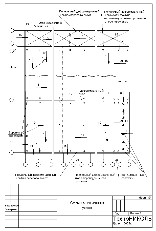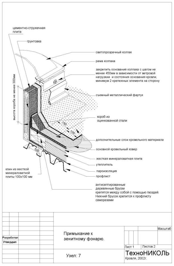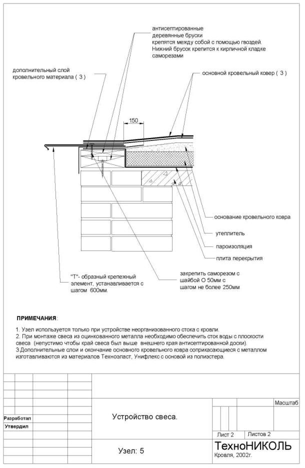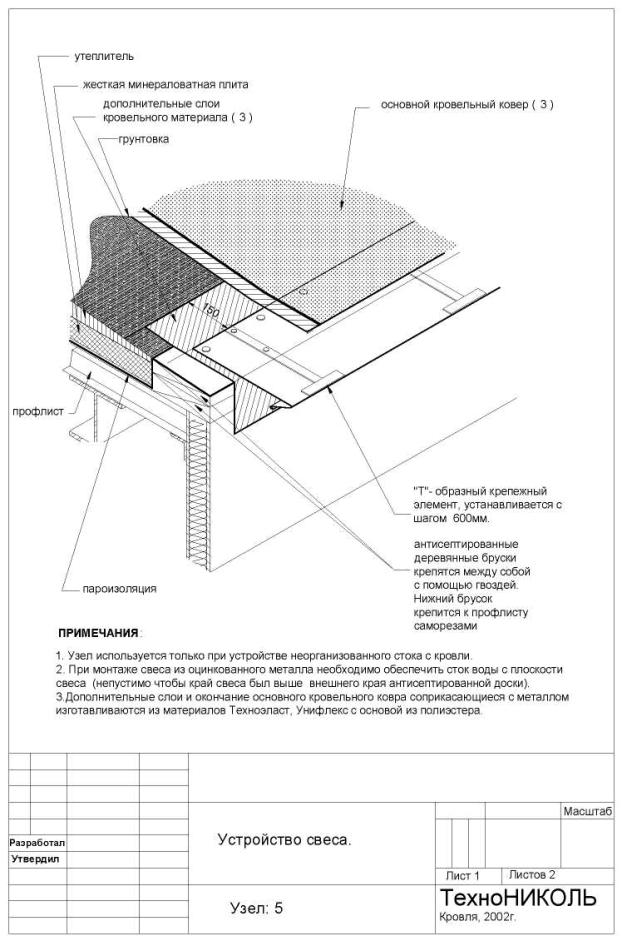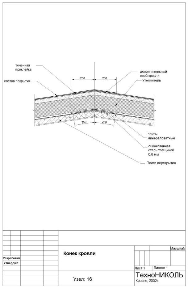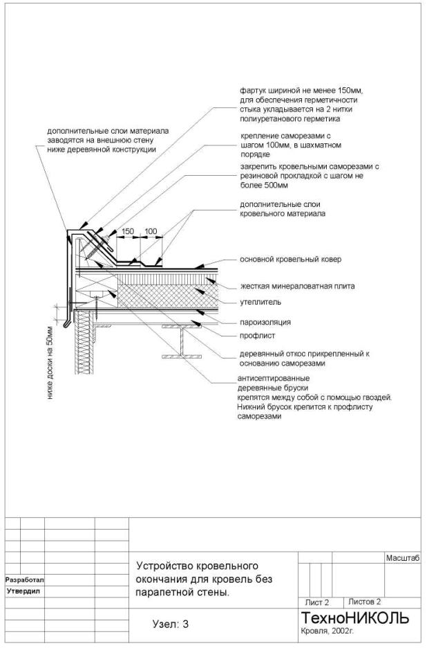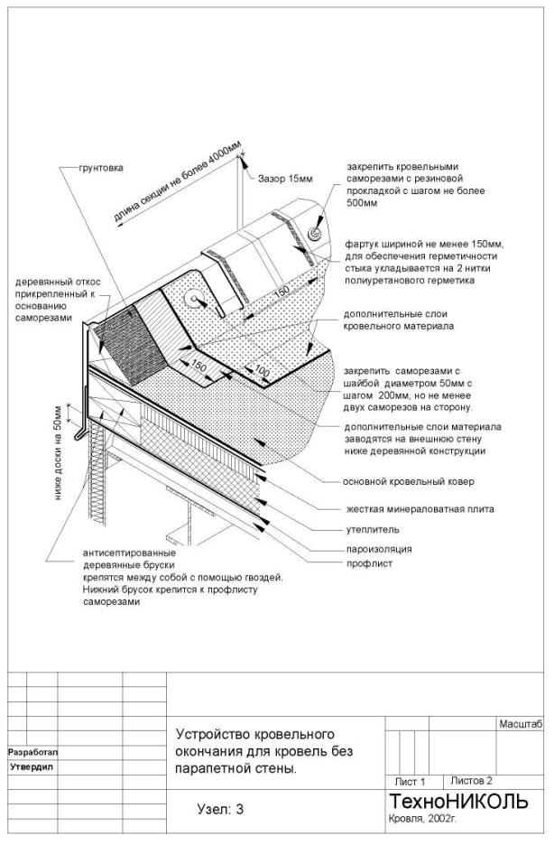 Перечень эскизов и технических решений для устройства кровель по профилированному настилу.