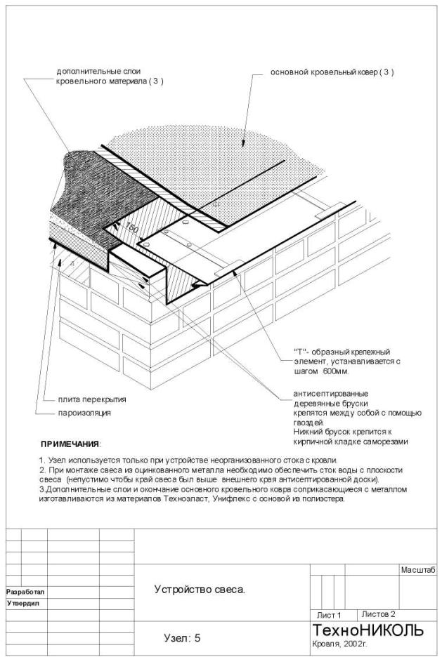 Устройство кровельного окончания для кровель без парапетной стены (проекция) |
