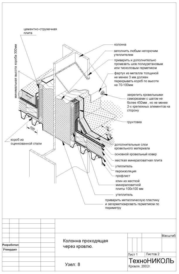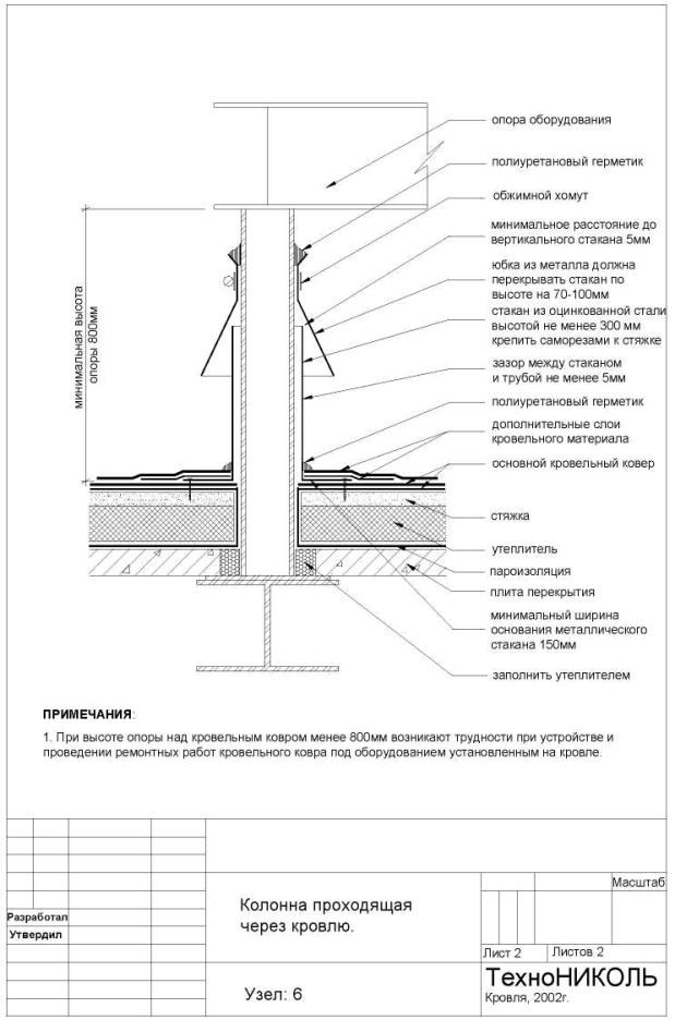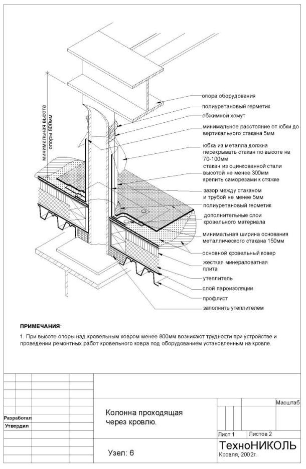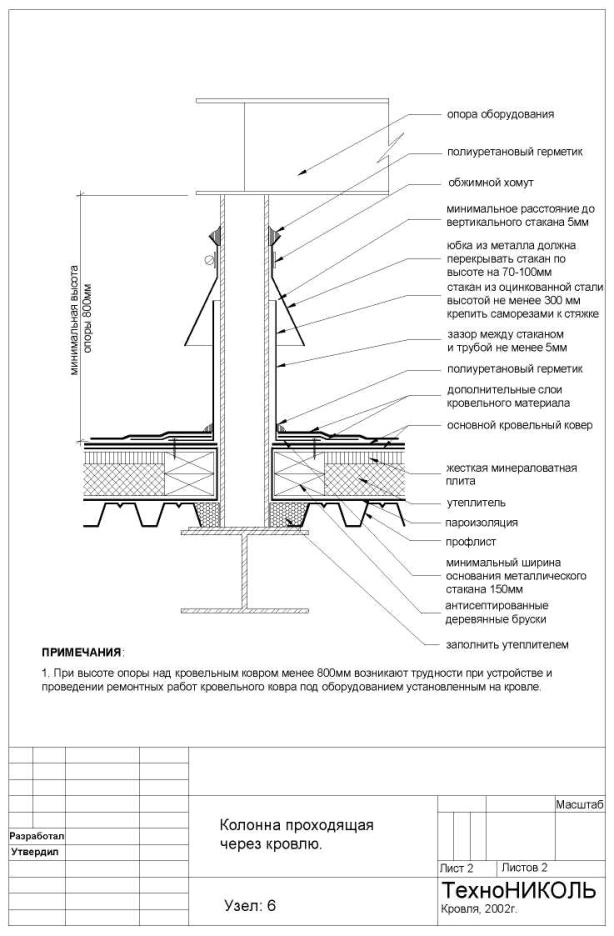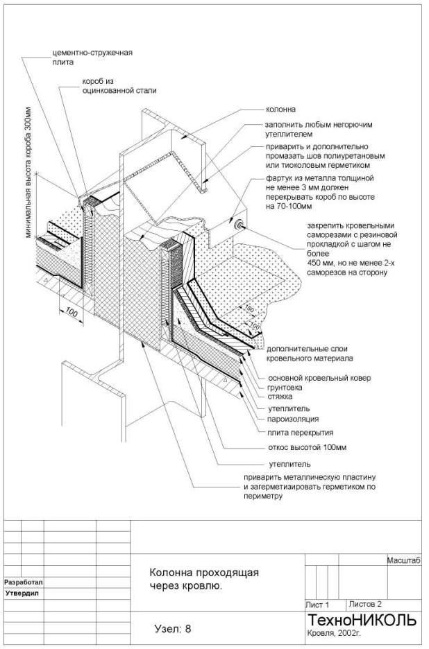 Сопряжение кровельного ковра с колонной оборудования (проекция) |