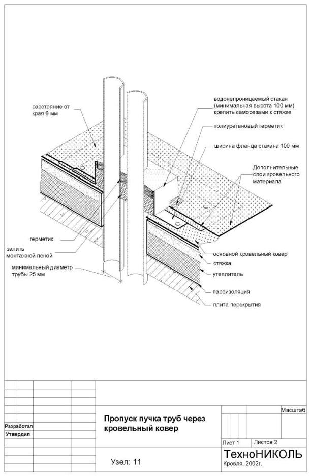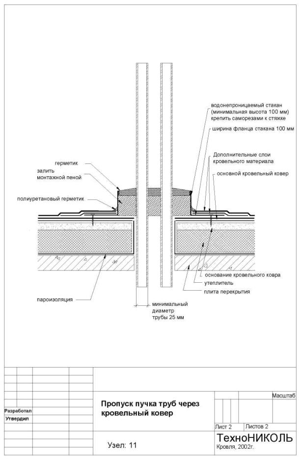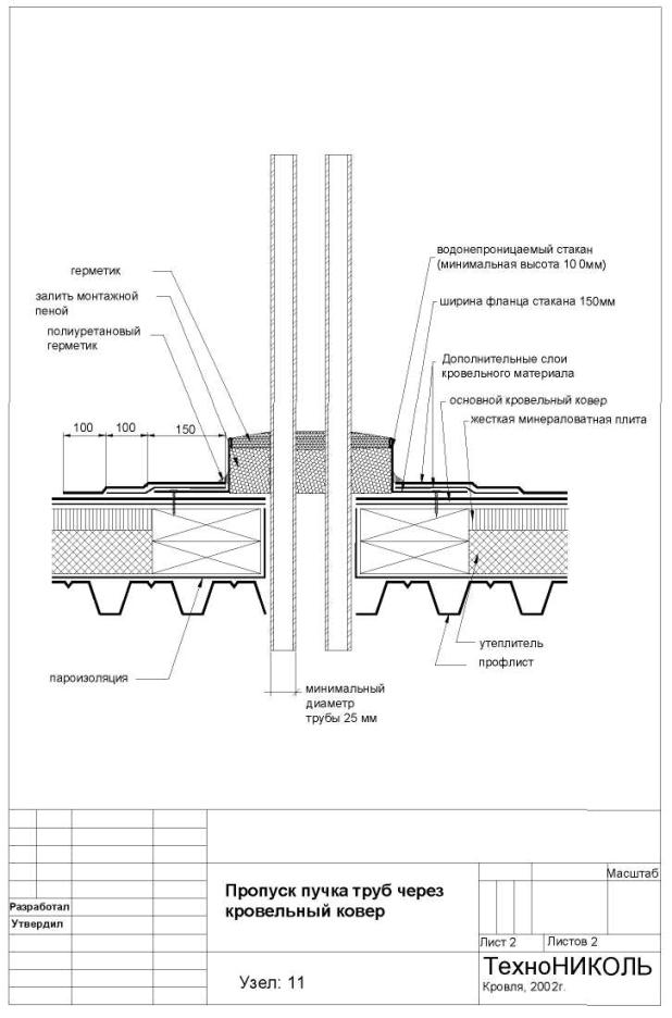 Пропуск пучка трубок через кровельный ковер (проекция) |