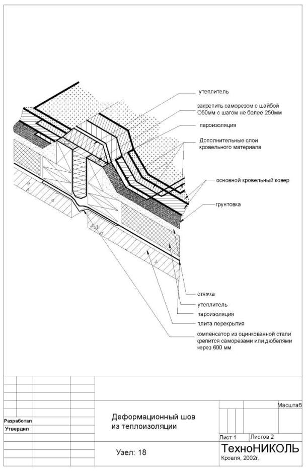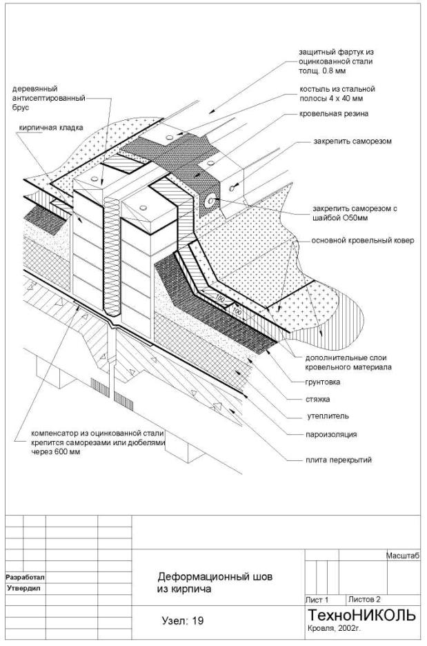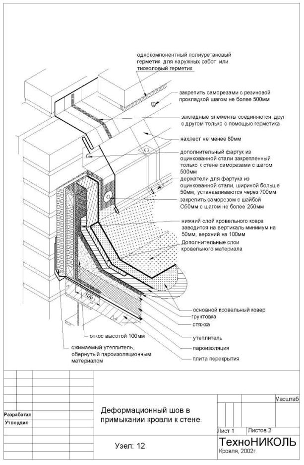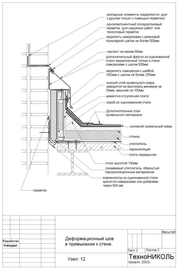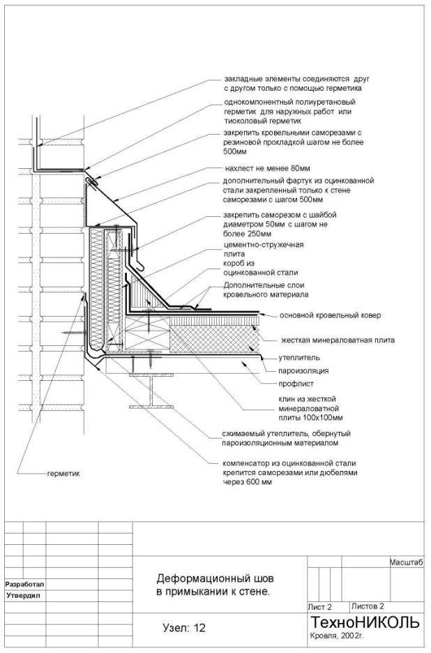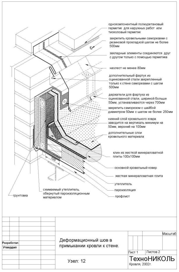 Деформационный шов в примыкании кровли к стене (проекция) |