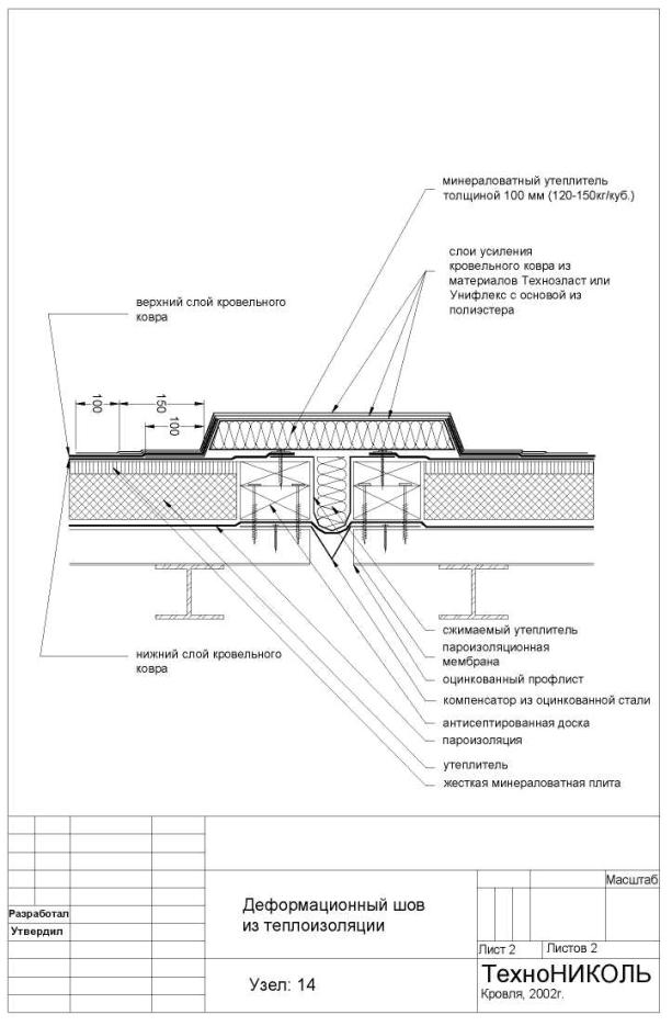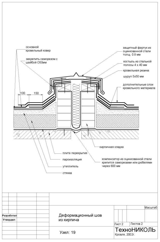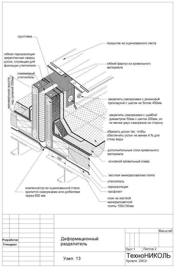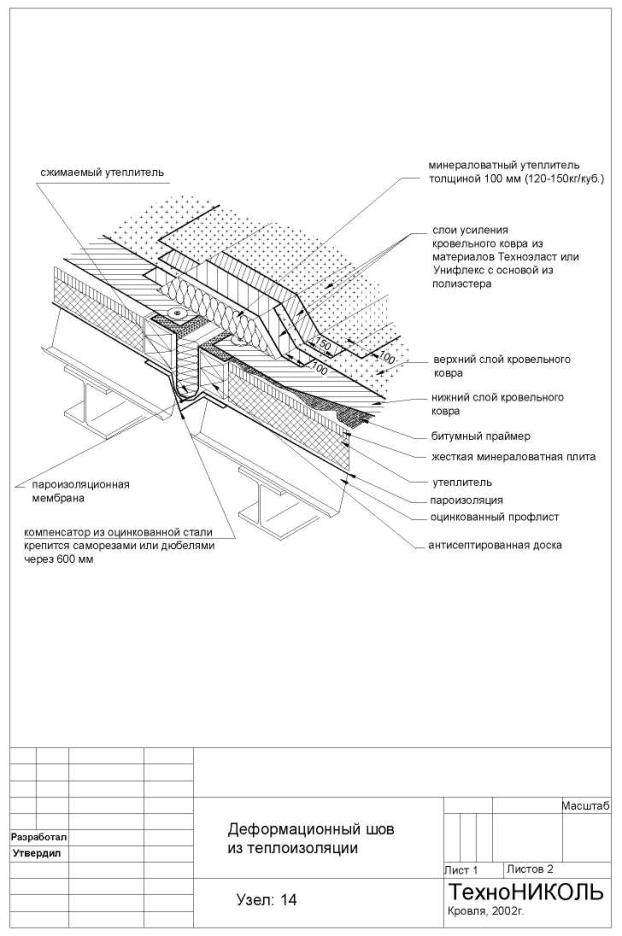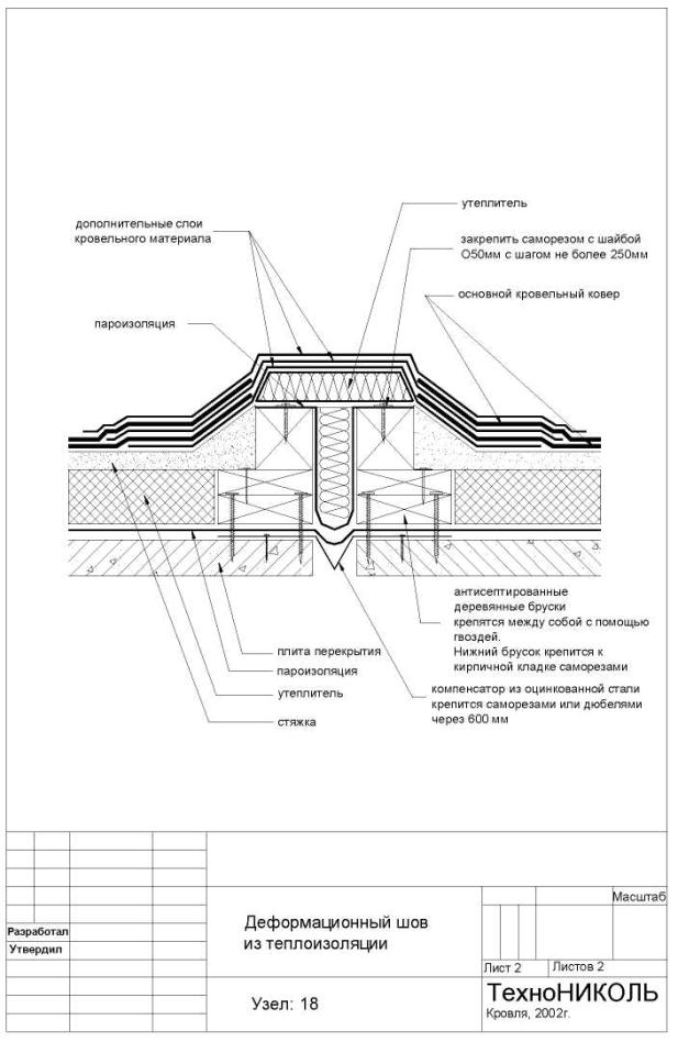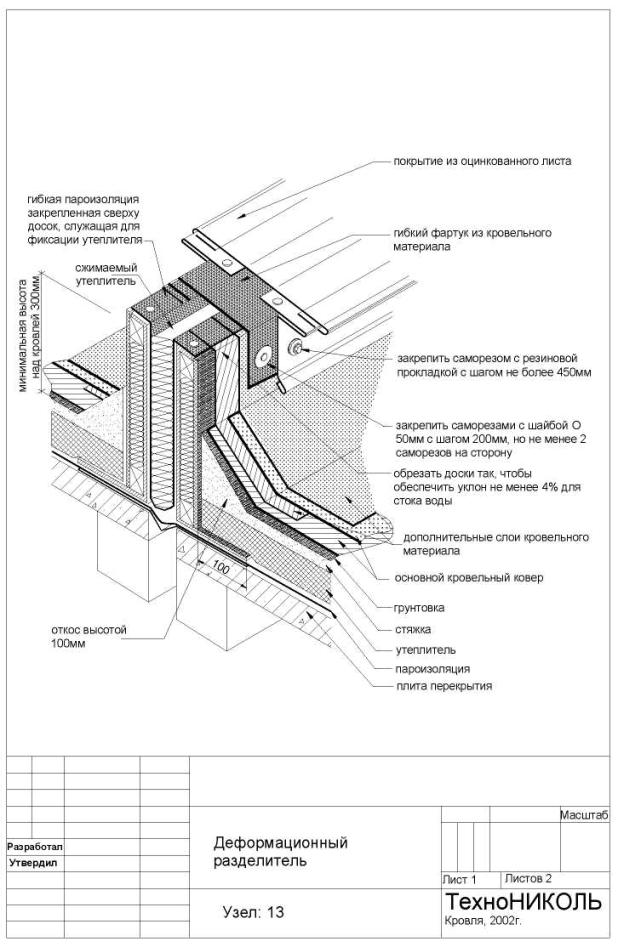 Деформационный шов в примыкании кровли к стене (проекция) |