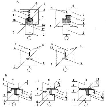 меньше расчетных и составляет для двухмодульных панелей 3 - 3.4. Анализ решений узлов стыковых соединений наружных стеновых панелей, используемых в московских сериях полносборных зданий, показал, что в настоящее время устройство вертикальных стыков производится по типу закрытого стыка с разной конфигурацией наружного устья; устройство горизонтальных стыков - по типу открытого и закрытого стыка (рисунок 1). 3.5. Конструкция стыка должна обеспечивать: - водонепроницаемость при заданных перепадах давлений воздуха на наружной и внутренней поверхностях стен; - воздухопроницаемость согласно СНиП 23-02-03: для жилых, общественных и бытовых зданий - не более 0,5 кг/(м2·ч); для производственных зданий - не более 1,0 кг/(м2·ч) - сопротивление теплопередаче - не ниже значения сопротивления теплопередаче для наружных ограждающих конструкций. 3.6. В стыках наружных стеновых панелей следует применять комплекс материалов, обеспечивающих их качественное уплотнение и герметизацию: - герметизирующие отверждающиеся мастики (герметики); - уплотняющие материалы; - ленточные материалы; - грунтовочные составы; - теплоизоляционные материалы. Рисунок