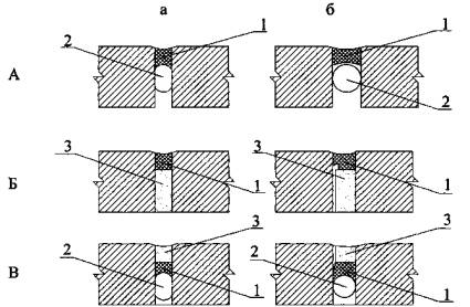 3 - Нанесение герметика в стыки большой ширины: 5.7.4. Теплоизоляцию вертикальных стыков производят с помощью утепляющего вкладыша, который помещают в колодец стыка и плотно прижимают к поверхности воздухозащитной ленты, на которую предварительно наносят клеящую мастику КН-2. Установленные вкладыши должны плотно прилегать к поверхностям колодца по всей высоте стыка. 5.7.5. Установку предусмотренных по проекту в качестве утеплителя пенополиэтиленовых прокладок Вилатерм или других утепляющих материалов в вертикальный и горизонтальный стыки производят поэтажно с перекрытия; их устанавливают насухо или на клеящих мастиках типа КН-2 в зависимости от их местоположения в соответствии с рабочими чертежами проекта. 5.8. Установка воздухозащитных лент5.8.1. Работы по установке воздухозащитных лент следует выполнять с перекрытия поэтажно до монтажа внутренних стен. 5.8.2. Перед наклейкой воздухозащитных лент необходимо тыльные грани колодца вертикального стыка тщательно очистить от загрязнений и пыли. 5.8.3. Применение воздухозащитных лент с липким слоем требует обязательного применения грунтовочных составов. Марка грунтовки должна соответствовать требованиям рабочих чертежей проекта и поставляться в комплекте с лентой. В качестве грунтовки по бетону под липкие ленты рекомендуются составы 51-Г-18 и ЛСГ-905, имеющие многолетний опыт применения в качестве грунтовочных составов; состав ГСР, недавно разработанный для этих целей, или другой состав, прошедший соответствующую проверку в специализированной лаборатории. 5.8.4. Перед нанесением грунт обязательно перемешивают до однородного состояния, наносят кистью в один-два приема и затем сушат в течение 10 - 20 мин. 5.8.5. Через 10 - 20 мин после нанесения