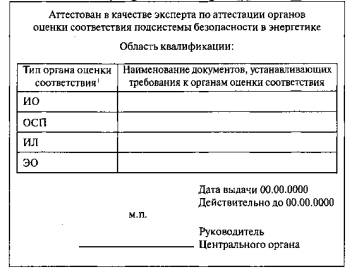 ТРЕБОВАНИЯ СДА-33 Приняты 1. ОБЩИЕ ПОЛОЖЕНИЯ1.1. Настоящий документ устанавливает общие Требования к экспертам по аттестации в подсистеме безопасности в энергетике Единой системы оценки соответствия на объектах, подконтрольных Федеральной службе по экологическому, технологическому и атомному надзору (далее - Единая система), а также к процедуре их назначения и учета. 1.2. Требования к экспертам по аттестации в подсистеме безопасности в энергетике разработаны с учетом: действующего законодательства Российской Федерации; нормативных документов Федеральной службы по экологическому, технологическому и атомному надзору (далее - Ростехнадзор); международных стандартов ISO серии 17000. 1.3. Эксперты выполняют работы по рассмотрению документов, проверке и инспекционному контролю органов оценки соответствия подсистемы безопасности в энергетике. 2. ОПРЕДЕЛЕНИЯВ настоящем документе применяется следующее определение: Эксперт по аттестации - лицо, непосредственно участвующее в проведении оценки органа оценки соответствия и обладающее компетентностью в выполнении этих функций, признанной Центральным органом в установленном порядке. 3. ТРЕБОВАНИЯ К ЭКСПЕРТАМ3.1. Эксперт должен: иметь высшее образование; знать процедуру и критерии аттестации, возможные дополнительные критерии для различных органов оценки соответствия; иметь опыт работы в оцениваемой области. Эксперты по аттестации перед получением их первого самостоятельного задания должны, как минимум, три раза принять участие в проверке организаций в качестве члена комиссии (проведение проверки под наблюдением эксперта по аттестации, подтвердившего квалификацию); иметь знания и опыт работы в сфере процедур обеспечения качества; обладать личными качествами, которые позволяют надлежащим образом оценить представленные заявителем данные. 3.2. Независимость эксперта по аттестации. Эксперт по аттестации должен быть независимым от чьих-либо интересов, действовать беспристрастно и соблюдать конфиденциальность в отношении проверяемых организаций. 3.3. Аттестация экспертов. Аттестация экспертов производится Центральным органом по представлению Специализированного органа. Аттестация предусматривает проверку компетентности и подготовленности экспертов к самостоятельному проведению оценки органов оценки соответствия в целях аттестации. В случае положительных результатов проведенной аттестации экспертам выдается свидетельство установленного образца (приложение 1). Эксперты должны не реже одного раза в три года проходить в Центральном органе переподготовку и принимать участие в ежегодных форумах (семинарах, конференциях) Единой системы. Данные о переподготовке и участии в форумах (семинарах, конференциях) заносятся в учетную карточку эксперта. 3.4. Получение полномочий экспертами. Центральный орган заключает с экспертами договор, в котором устанавливаются права и обязанности экспертов, включая обязательства о соблюдении требований документации, регламентирующей деятельность по аттестации, конфиденциальность в отношении сведений об участниках Единой системы, а также беспристрастность при выполнении работ в рамках Единой системы (приложение 2). 4. ПРОЦЕДУРА НАЗНАЧЕНИЯ ЭКСПЕРТОВНазначение экспертов для проверки и оценки организаций осуществляется Специализированным о