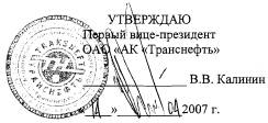 Первым вице-президентом ОАО «АК «Транснефть» Калининым 21.05.2007 г., Изменение