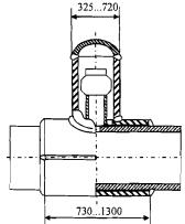 очистки и диагностики) с усиливающей накладкой при отношении диаметра патрубка