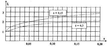 z(ze)=z10(ze/10)-a (6.6) Значения параметров z10 и a для различных типов местностей приведены в таблице 6.3; б) для всех сооружений (и их конструктивных элементов), у которых f1,<fl<f2 - по формуле wp=wтxz(ze)v, (6.7) где f2 - вторая собственная частота; x - коэффициент динамичности, определяемый по рис. 6.1 в зависимости от параметра логарифмического декремента колебаний d (см. п. 6.1.10) и параметра ei, который определяется формулой (6.8) для первой собственной частоты f1;