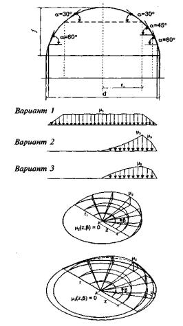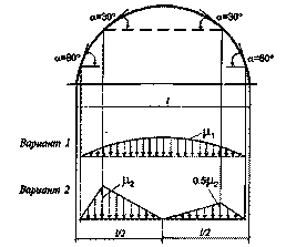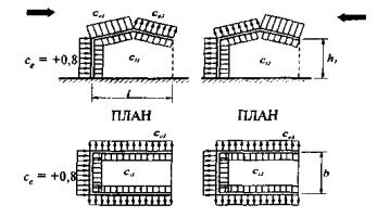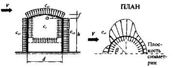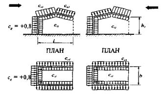 Для зданий со сводчатыми и близкими к ним по очертанию покрытиями (рисунок Б.2.1) следует принимать