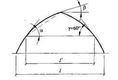 Для покрытий в виде стрельчатых арок (рисунок Б.2.2) при β£15° необходимо использовать схему-рисунок Б.1, б принимая l=l¢, при β<15° - схему-рисунок Б.2.2.