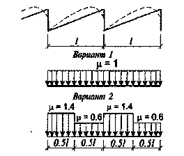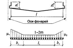 Для зданий с продольными фонарями, закрытыми сверху (рисунок Б.3.1.1), для двух схем снеговой нагрузки (рисунок Б.3.1.2) коэффициенты μ следует определять как: