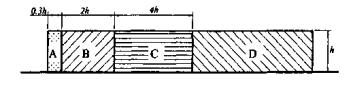 6.1.5 Эквивалентная высота ze определяется следующим образом: 1) для башенных сооружений, мачт, труб и т.п. сооружений ze=z; 2) для зданий: а) при h£d→ze=h; б) при h£2d - для z³h-d→ze=h - для 0<z<h-d→ze=d; в) при h>2d - для z³h-d→ze=h - для d<z<h-d→ze=z - для 0<z£d→ze=d, здесь z - высота от поверхности земли; d - размер здания (без учета его стилобатной части) в направлении, перпендикулярном расчетному направлению ветра (поперечный размер); h - высота здания. 6.1.6 Коэффициент k(ze) определяется по таблице 6.2 или по формуле (6.4), в которых принимаются следующие типы местности: А - открытые побережья морей, озер и водохранилищ, сельские местности, в том числе с постройками высотой менее 10 м, пустыни, степи, лесостепи, тундра; В - городские территории, лесные массивы и другие местности, равномерно покрытые препятствиями высотой более 10 м; С - городские районы с плотной застройкой зданиями высотой более 25 м. Сооружение считается расположенным в местности данного типа, если эта местность сохраняется с наветренной стороны сооружения на расстоянии 30h - при высоте сооружения h до 60 м и на расстоянии 2 км - при h > 60 м. Примечание - При определении ветровой нагрузки типы местности могут быть различными для разных расчетных направлений ветра.