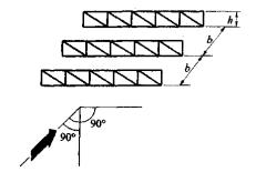 6.1.7 При определении компонентов ветровой нагрузки we, wf, wi, wx, wy и wz следует использовать соответствующие значения аэродинамических коэффициентов: внешнего давления се, трения сf, внутреннего давления сi и лобового сопротивления сх, поперечной силы сy, крутящего момента cz, принимаемых по приложению В.1, где стрелками показано направление ветра. Знак «плюс» у коэффициентов се или сi соответствует направлению давления ветра на соответствующую поверхность (активное давление), знак «минус» - от поверхности (отсос). Промежуточные значения нагрузок следует определять линейной интерполяцией. При определении ветровой нагрузки на поверхности внутренних стен и перегородок при отсутствии наружного ограждения (на стадии монтажа) следует использовать аэродинамические коэффициенты внешнего давления се или лобового сопротивления сх. В случаях, не предусмотренных в приложению В.1 (иные формы сооружений, учет при надлежащем обосновании других направлений ветрового потока или составляющих общего сопротивления тела по другим направлениям, необходимость учета влияния близстоящих зданий и сооружений и т.п. случаях), аэродинамические коэффициенты необходимо принимать по справочным данным или на основе результатов продувок моделей сооружений в аэродинамических трубах. Примечание - При назначении коэффициентов сх, су и ст необходимо указать размеры сооружения, к которым они отнесены. 6.1.8 Нормативное значение пульсационной составляющей ветровой нагрузки wр на эквивалентной высоте ze следует определять следующим образом: а) для сооружений (и их конструктивных элементов), у которых первая частота собственных колебаний f1, Гц, больше предельного значения собственной частоты fl (см. п. 6.1.10), - по формуле wp=wтz(ze)v, (6.5) где wт - определяется в соответствии с п. 6.1.3; z(ze) - коэффициент пульсации давления ветра, принимаемый по таблице 6.4 или формуле (6.6) для эквивалентной высоты ze (см. п. 6.1.5); v - коэффициент пространственной корреляции пульсаций давления ветра (см. п. 6.1.11).