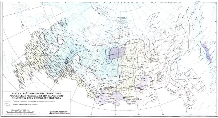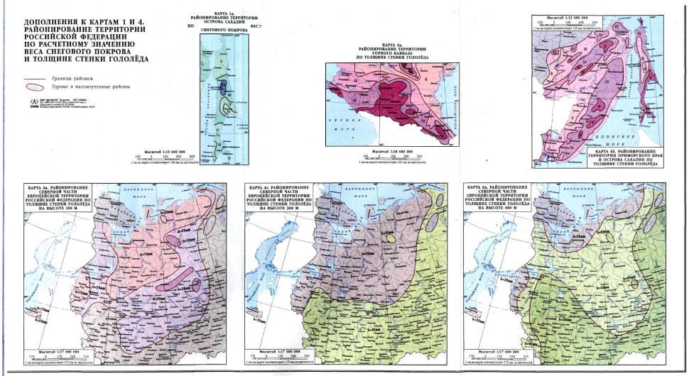 Районирование территории Российской Федерации по расчетному значению веса снегового покрова и толщине стенки гололеда