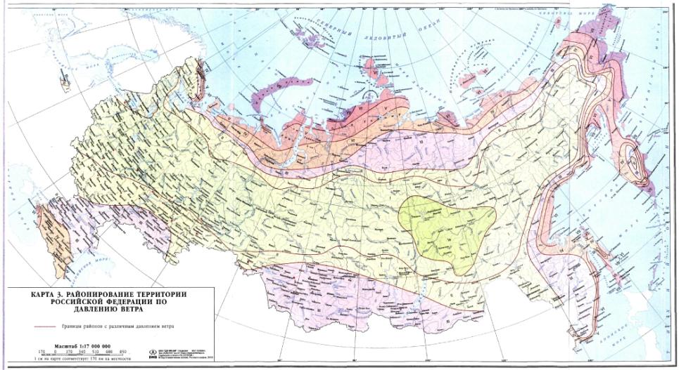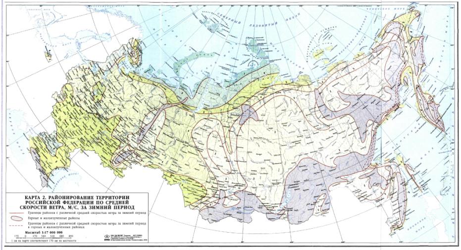 Районирование территории Российской Федерации по средней скорости ветра, м/с, за зимний период