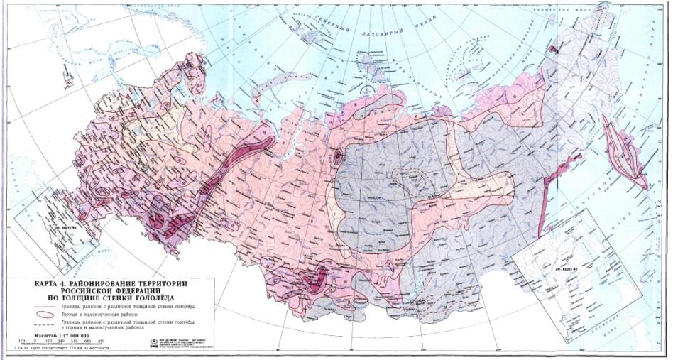 Районирование территории Российской Федерации по толщине стенки гололеда