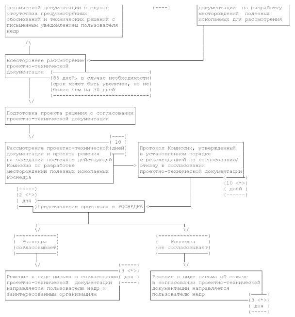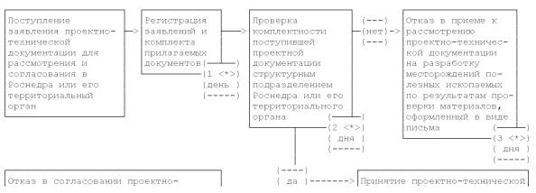 Приложение 4к Административному регламенту предоставления Федеральным агентством по недропользованию государственной услуги по рассмотрению и согласованию проектной и технической документации на разработку месторождений полезных ископаемых БЛОК-СХЕМАПОСЛЕДОВАТЕЛЬНОСТИ ДЕЙСТВИЙ ПРИ ПРЕДОСТАВЛЕНИИ ГОСУДАРСТВЕННОЙ УСЛУГИ ПО РАССМОТРЕНИЮ И СОГЛАСОВАНИЮ ПРОЕКТНОЙ И ТЕХНИЧЕСКОЙ ДОКУМЕНТАЦИИ НА РАЗРАБОТКУ МЕСТОРОЖДЕНИЙ ПОЛЕЗНЫХ ИСКОПАЕМЫХ