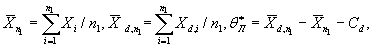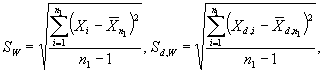 где {Xi, i = 1,..., n1} - результаты параллельных определений для рабочей пробы; {Xd,i, = 1,..., n1} - результаты параллельных определений для рабочей пробы с добавкой. Примечание - Если показатель точности МКХА сформирован на