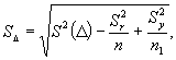 Sy - СКО, характеризующее разброс результатов, получаемых по проверяемой и по контрольной методике; S(Δ) ≈ σ(Δ) - показатель точности проверяемой методики анализа в виде СКО; Sr ≈ σr - СКО повторяемости проверяемой методики анализа. Примечание - Если показатель точности МКХА сформирован на основе только показателя воспроизводимости, то SΔ рассчитывают по формуле