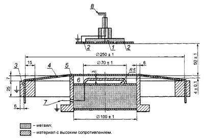 Дата введения - 2009-07-01 1 Область примененияНастоящий стандарт распространяется на специальную одежду и текстильные материалы и устанавливает методы измерения убывания заряда с поверхности материалов. 2 Нормативные ссылкиВ настоящем стандарте использованы нормативные ссылки на следующие стандарты: ЕН 340:2003 Одежда защитная. Общие требования. ЕН 1149-1:1995 Одежда защитная. Электростатические свойства. Часть 1. Метод испытания для измерения поверхностного удельного сопротивления 3 Термины и определенияВ настоящем стандарте применены следующие термины с соответствующими определениями: 3.1 поверхностные проводящие волокна: Волокно, в котором проводящий компонент обнажается на поверхности. В зависимости от структуры поперечного сечения волокна проводящей может быть вся поверхность или только ее часть. 3.2 каркасные проводящие волокна: Волокно, в котором проводящий компонент полностью скрыт в непроводящем материале. 3.3 убывание заряда: Перемещение заряда по поверхности материала или через него, приводящее к уменьшению плотности заряда или поверхностного потенциала в точке приложения заряда. 3.4 напряженность электрического поля: Е0 - максимальная напряженность электрического поля после трибоэлектрического накопления заряда, кВ/м; Е30 - напряженность электрического поля через 30 с после Е0, кВ/м; Еmах - напряженность электрического поля, показанная регистрирующим прибором без наличия испытуемого образца, кВ/м; ER - максимальная напряженность электрического поля, показанная регистрирующим прибором при наличии испытуемого образца в точке измерения. 3.5 полупериод убывания заряда t50: Время, которое требуется для затухания указанной напряженности поля до Еmах/2, с. 3.6 коэффициент экранирования S: Соотношение между Еmах и ER вычисляют по формуле