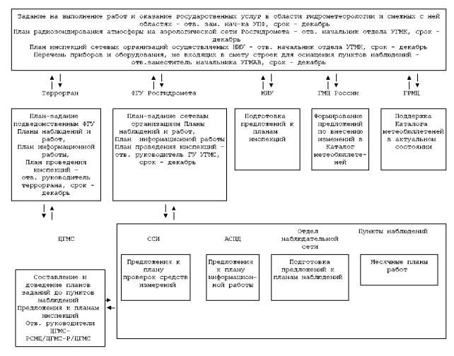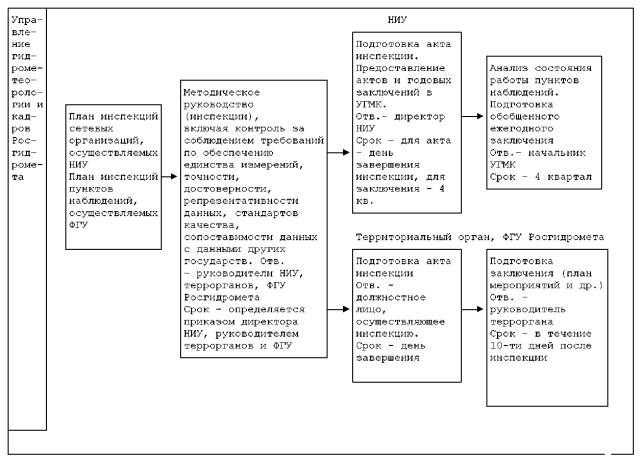 Блок-схема административных процедур исполнения государственной функции по обеспечению функционирования на территории Российской Федерации пунктов гидрометеорологических наблюдений и системы получения, сбора и распространения гидрометеорологической информации. Приложение 2Форма плана инспекций сетевых организаций в рамках работ НИУ по научно-методическому руководству на ______ год