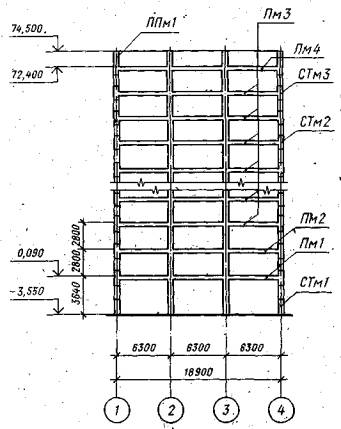 Постановлением Государственного комитета СССР по делам строительства от 22 октября 1980 г. № 166 срок введения установлен с 01.07 1981 т. Настоящий стандарт устанавливает состав и правила оформления рабочих чертежей бетонных и железобетонных конструкций зданий и сооружений всех отраслей промышленности и народного хозяйства. 1. ОБЩИЕ ПОЛОЖЕНИЯ1.1. Рабочие чертежи бетонных и железобетонных конструкций зданий и сооружений выполняют в соответствии с требованиями настоящего стандарта и других стандартов системы проектной документации для строительства. 1.2. В состав рабочих чертежей бетонных и железобетонных конструкций включают: рабочие чертежи, предназначенные для производства строительно-монтажных работ (основной комплект рабочих чертежей марки КЖ); рабочие чертежи бетонных и железобетонных элементов сборных конструкций *; рабочие чертежи арматурных и закладных изделий, примененные в монолитных железобетонных конструкциях; ведомость потребности в материалах на бетонные и железобетонные конструкции, * В качестве бетонными железобетонных элементов сборных конструкций здесь и далее рассматриваются колонны, балки, фермы, плиты и другие изделия, предварительно изготовленные (главным образом в заводских условиях) и примененные в этих конструкциях. 2. ОСНОВНОЙ КОМПЛЕКТ РАБОЧИХ ЧЕРТЕЖЕЙ МАРКИ КЖ2.1. В состав основного комплекта рабочих чертежей марки КЖ включают: общие данные по рабочим чертежам; схемы расположения элементов сборных бетонных и железобетонных конструкций; рабочие чертежи монолитных бетонных и железобетонных конструкций (кроме чертежей арматурных и закладных изделий, примененных в этих конструкциях); спецификации; ведомость расхода стали на элемент. 2.2. В состав общих данных по рабочим чертежам, кроме сведений, предусмотренных ГОСТ 21.102-79, включают сведения о нагрузках и воздействиях, принятых для расчета бетонных и железобетонных конструкций здания или сооружения в целом, а также ведомость объемов сборных бетонных и железобетонных конструкций. 2.3. Схемы расположения элементов сборных бетонных и железобетонных конструкций выполняют по ГОСТ 21.502-78. 2.4. Рабочие чертежи монолитных бетонных и железобетонных конструкций 2.4.1. Для зданий и сооружений, выполненных в монолитном железобетоне, при необходимости, выполняют схему расположения конструкций. Схему выполняют в масштабе 1 : 200 или 1 : 500. На схеме указывают: координационные оси здания (сооружения), расстояния между ними и крайними осями; отметки наиболее характерных для данных конструкций уровней; марки конструкций. Пример выполнения схемы расположения монолитных железобетонных конструкций здания приведен на черт. 1. 2.4.2. Рабочие чертежи монолитной бетонной конструкции, включаемые в основной комплект марки КЖ, состоят из видов, разрезов и сечений, а монолитной железобетонной конструкции, кроме того, - из схемы армирования конструкции или схем армирования ее элементов. 2.4.3. Виды, разрезы и сечения выполняют в масштабе 1:20, 1 : 50 или 1 :100. На видах, разрезах и сечениях (черт. 2) указывают: координационные оси здания (сооружения), расстояния между ними и крайними осями, а также привязку к ним элементов конструкции;