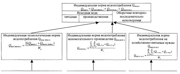 3.8.4 Индивидуальная технологическая норма включает потребность воды, предусмотренную технологией основного производства с учетом нормируемых потерь воды. Индивидуальная технологическая норма водопотребления (Qинд.техн.s) определяется как сумма операционных технологических норм (Qтехн.is):