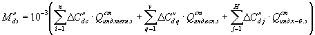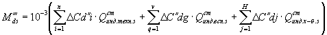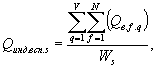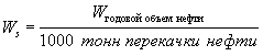 где Ws - годовая перевалка нефтегрузов на танкера, отнесенная к единице продукции (1000 тонн отгруженных нефтегрузов); Wsi - количество нефтегруза, перевозимое танкерами i-типа в течение года, отнесенное к единице продукции (1000 тонн отгруженных нефтегрузов); Gб.i, Gi - количество балластных вод и грузоподъемность i-танкера, тыс. тонн; i=l, 2, 3...n - количество типов танкеров, обрабатываемых нефтебазой; Qинд.л.s - годовое количество льяльных вод, отнесенное к единице продукции (1000 тонн отгруженных нефтегрузов)