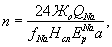 где n - число регенераций каждого фильтра в сутки; Жo - общая жесткость воды, поступающей на Na - катионитные фильтры, мг-экв/л; Нсл - высота слоя катионита, м (принимается по таблице 3); QNa - производительность натрий-катионитных фильтров, м3/час; fNa - площадь фильтрования натрий-катионитного стандартного фильтра, м2, принимается по сечению пустого фильтра; а - количество работающих фильтров, принимается не менее двух, кроме резервного, который в расчете не учитывается;