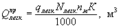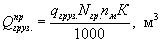 где qгруз, qлегк, qавт - норма расхода воды на мойку соответственно грузовых, легковых автомашин, автобусов и принимается по таблице 7; Nгр, Nлегк, Nавт - количество соответственно грузовых, легковых автомашин, автобусов; nм - количество моек в году; К - коэффициент, зависящий от фактического количества автомашин, проходящих мойку по отношению к среднесписочному количеству транспорта (согласно ВСН 33/10-2.2.10-88), К=0,4; 1000 - коэффициент перевода единиц измерения. Таблица 7 Расходы воды на мойку автотранспорта