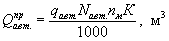 где qагр. - норма расхода воды на охлаждение одного насосного агрегата (определяется по паспортным данным), л/час; nагр - количество насосных агрегатов, охлаждаемых водой; h - коэффициент использования насосных агрегатов (определяется по журналу регистрации работы каждого насосного агрегата); t - время работы насосных агрегатов в сутки; 1000 - коэффициент перевода единицы измерения. 3.8.9