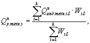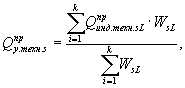 Qу.техн.s - укрупненная технологическая норма водопотребления на 1000 тонн перекачиваемой нефти по районному нефтепроводному управлению; WsL - объем перекачанной нефти по L-му предприятию в тыс. тоннах (в пределах районного нефтепроводного управления. Второй