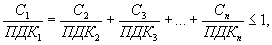 где kcp - осредненное значение коэффициента не консервативности органических веществ, обуславливающих БПКполн фона и сточных вод, 1/сутки; Ссм - БПКполн, обусловленная органическими веществами, смываемыми в водоток атмосферными осадками с площади водосбора на последнем участке пути перед контрольным створом длиной 0,5 суточного пробега. Величина Ссм принимается: для горных рек - 0,6¸0,8 г/м3; для равнинных рек, протекающих по территории, почва которой не слишком богата органическими веществами - 1,7¸2,0 г/м3; для рек болотного питания, или протекающих по территории, с которой смывается повышенное количество органических веществ - 2,3¸2,5 г/м3. Если расстояние от выпуска сточных вод до контрольного створа меньше 0,5 суточного пробега, то Ссм принимается равной нулю. 3.18.3.4 Так как в стоке могут содержаться загрязняющие вещества, относящиеся к одной группе по лимитирующему показателю вредности (ЛПВ), которые, попадая в водоток одновременно, создают условия комбинированного действия, ПДС устанавливается из расчета: где С1, С2, С3...Сn - концентрации загрязняющих веществ в реке, относящиеся к одной группе ЛПВ; ПДК1, ПДК2, ПДК3,..ПДКn - предельно допустимые концентрации загрязняющих веществ данной категории водопользования, относящиеся к одной группе ЛПВ. 3.18.3.5 Если в реке соблюдается данное неравенство, то это означает, что самоочищающаяся способность реки по веществам данной группы ЛПВ не исчерпана и расчет Спдс можно производить по формуле (86). Если же неравенство (96) для реки не соблюдается, т. е. вода к месту сброса сточных вод уже загрязнена и Сф£Спдк, то уравнение (86) принимает следующий вид: СПДС£СПДК (97) Это означает, что метод расчета с применением формулы смешения (86) не может быть применен, так как самоочищающая способность водотока в данном месте исчерпана, и нормативные требования к воде водотока должны быть отнесены к самим сточным водам, сбрасываемым в водоток. Формула смешения может быть применена только в случае следующего соотношения расхода реки и расхода сбрасываемых сточных вод: