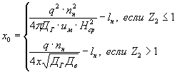 где l - расстояние от выпуска до ближайшей границы района водопользования (контрольного створа), м; х0 - параметр сопряжения начального участка разбавления с основным участком, м; им - скорость морского течения, соответствующая неблагоприятной гидрологической ситуации, м/с; хn - параметр сопряжения участка 2-х мерной диффузии с участком 3-х мерной диффузии, м; Дв, ДГ - соответственно коэффициенты вертикальной и горизонтальной турбулентной диффузии, м2/с; Нср - средняя глубина моря в месте выпуска, м; lн - длина начального участка разбавления, м; g0 - параметр, учитывающий влияние берега на кратность основного разбавления; l0 - расстояние выпуска от берега, м. В расчете кратности основного разбавления при отсутствии данных о коэффициентах диффузии для конкретного района расположения выпуска следует использовать значение коэффициента горизонтальной турбулентной диффузии Дг, определяемое по формуле Л. Д. Пухтяра и Ю. С. Осипова: ДГ=0,032+21,6и2м (130) Значение коэффициента вертикальной турбулентной диффузии можно принимать равным: Дв=5×10-4, м2. (131) Величина lн в зависимости от условий п. 3.20.1.5¸3.20.1.7 определяется как:
