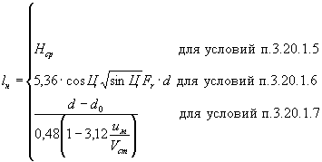 3.20.1.7 Если сточная вода легче морской, но не выполняется условие (п. 3.20.1.5) или сточная вода тяжелее морской, но не выполняется условие (п. 3.20.1.6) или же плотность сточной воды равна плотности морской воды в месте сброса, расчет кратности начального разбавления выполняется методом Н. Н. Лапшева: