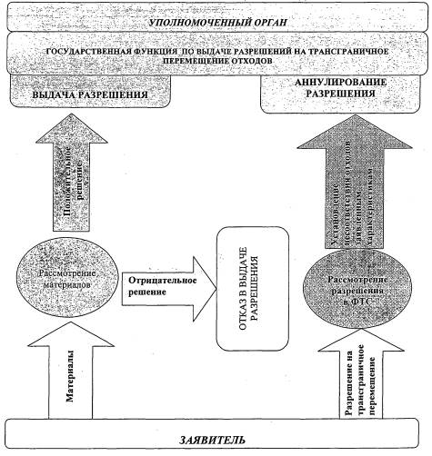 I. Общие положения1. Административный регламент Федеральной службы по экологическому, технологическому и атомному надзору по исполнению государственной функции по выдаче разрешений на трансграничное перемещение отходов (далее - Регламент) разработан на основании постановления Правительства Российской Федерации от 11 ноября 2005 г. N 679 "О порядке разработки и утверждения административных регламентов исполнения государственных функций (предоставления государственных услуг)" (Собрание законодательства Российской Федерации, 2005, N 47, ст. 4933; 2007, N 50, ст. 6285; 2008, N 18, ст. 2063). Регламент определяет сроки и последовательность действий (административных процедур) Федеральной службы по экологическому, технологическому и атомному надзору (далее - Ростехнадзор), порядок взаимодействия между структурными подразделениями Ростехнадзора при осуществлении полномочий по выдаче разрешений на трансграничное перемещение отходов, определенных Положением о Федеральной службе по экологическому, технологическому и атомному надзору, утвержденным постановлением Правительства Российской Федерации от 30 июля 2004 г. N 401 (Собрание законодательства Российской Федерации, 2004, N 32, ст. 3348; 2006, N 5, ст. 544; N 23, ст. 2527; N 52 (ч. 3), ст. 5587; 2008, N 22, ст. 2581). Действие Регламента не распространяется на трансграничное перемещение радиоактивных отходов и отходов производства взрывчатых веществ. 2. Исполнение государственной функции по выдаче разрешений на трансграничное перемещение отходов осуществляется Федеральной службой по экологическому, технологическому и атомному надзору в соответствии с: 1) Базельской конвенцией о контроле за трансграничной перевозкой опасных отходов и их удалением (далее - Базельская конвенция), ратифицированной Федеральным законом Российской Федерации от 25 ноября 1994 г. N 49-ФЗ "О ратификации Базельской конвенции о контроле за трансграничной перевозкой опасных отходов и их удалением" (Собрание законодательства Российской Федерации, 1994, N 31, ст. 3200); 2) Федеральным законом от 24 июня 1998 г. N 89-ФЗ "Об отходах производства и потребления" (Собрание законодательства Российской Федерации, 1998, N 26, ст. 3009; 2004, N 35, ст. 3607; 2005, N 19, ст. 1752). 3) Постановлением Правительства Российской Федерации от 17 июля 2003 г. N 442 "О трансграничном перемещении отходов" (Собрание законодательства Российской Федерации, 2003, N 29, ст. 3012; 2007, N 6, ст. 760). 4) Постановлением Правительства Российской Федерации от 30 июля 2004 г. N 401 "О Федеральной службе по экологическому, технологическому и атомному надзору" (Собрание законодательства Российской Федерации, 2004 г., N 32, ст. 3348; 2008 г., N 22, ст. 2581); 5) Постановлением Правительства Российской Федерации от 11 апреля 2006 г. N 208 "Об утверждении формы документа, подтверждающего наличие лицензии" (Собрание законодательства Российской Федерации, 2006, N 16, ст. 1746; 2007, N 24, ст. 2927); 6) приказом Министерства природных ресурсов Российской Федерации от 24 декабря 2003 г. N 1151 "Об утверждении форм уведомления о трансграничном перемещении отходов и документа о перевозке отходов" (зарегистрирован в Минюсте России 02 февраля 2004 г., регистрационный N 5515), (Бюллетень нормативных актов федеральных органов исполнительной власти, N 8, 2004); 7) приказом Министерства природных ресурсов Российской Федерации от 15 июня 2001 г. N 511 "Об утверждении Критериев отнесения опасных отходов к классу опасности для окружающе