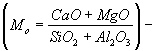 на 100 суммы полных остатков на всех ситах, начиная с сита, размером отверстий МОДУЛЬ ОСНОВНОСТИ