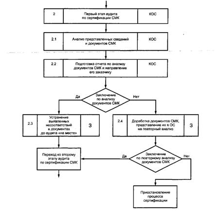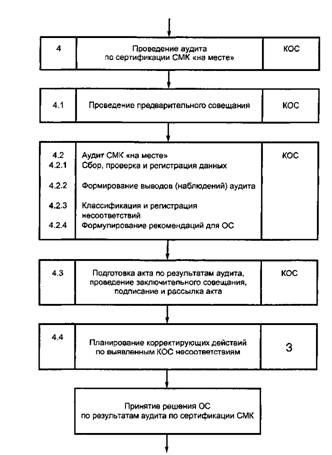 3.19 значительное несоответствие (категория 1): Несоответствие системы менеджмента качества, которое с большой вероятностью может повлечь невыполнение требований потребителей и/или обязательных требований к продукции. 3.20 малозначительное несоответствие (категория 2): Отдельное несистематическое упущение, ошибка, недочет в функционировании системы менеджмента качества или в документации, которые могут привести к невыполнению требований потребителя и/или обязательных требований к продукции, или к снижению результативности функционирования системы менеджмента качества. 3.21 уведомление: Свидетельство аудита, не носящее характер несоответствия и фиксируемое в целях предотвращения возможного несоответствия. 3.22 область применения системы менеджмента качества: Совокупность процессов жизненного цикла продукции (услуг), охватываемых системой менеджмента качества. 3.23 область сертификации: Область применения системы менеджмента качества, заявляемая организацией-заказчиком и подтверждаемая органом по сертификации с учетом допустимых исключений согласно 1.2 ГОСТ Р ИСО 9001-2008. 4 Цели проведения сертификации системы менеджмента качестваПри проведении/по результатам сертификации системы менеджмента качества (далее - СМК) определяют: - степень соответствия СМК проверяемой организации требованиям ГОСТ Р ИСО 9001-2008; - результативность СМК. 5 Требования к условиям проведения сертификации системы менеджмента качества5.1 Работы по сертификации СМК проводят в соответствии с ГОСТ Р ИСО/МЭК 17021-2008, ГОСТ Р ИСО 19011-2003 и настоящим стандартом аккредитованные в Системе сертификации ГОСТ Р органы по сертификации систем менеджмента качества. 5.2 Условием проведения сертификации СМК является наличие в организации документально оформленной и внедренной СМК. 5.3 К работе по сертификации СМК привлекают экспертов по сертификации систем менеджмента качества (далее - эксперты), зарегистрированных в Образовательной автономной некоммерческой организации (ОАНО) «Регистр Системы сертификации персонала» (РССП), и, при необходимости, технических экспертов. 5.4 Область применения СМК определяет и заявляет организация-заказчик, область сертификации СМК определяет орган по сертификации по результатам аудита. 6 Объекты аудита6.1 Объекты аудита при сертификации системы менеджмента качестваПри сертификации СМК объектами аудита являются: - область применения СМК; - качество продукции; - документы СМК; - процессы СМК. 6.2 Область применения системы менеджмента качестваПри проверке области применения СМК орган по сертификации анализирует: а) все ли виды продукции и процессы жизненного цикла, указанные в заявке проверяемой организации на сертификацию, охвачены СМК; б) правомерность исключений из требований к СМК организации требований раздела 7 ГОСТ Р ИСО 9001-2008 к процессам жизненного цикла продукции, если такие исключения указаны в заявке на сертификацию в соответствии с 1.2 ГОСТ Р ИСО 9001-2008. Анализ исключений проводят для каждого вида продукции, указанного в заявке на сертификацию. Подробное обоснование таких исключений должно быть приведено в соответствующем разделе Руководства по качеству. Неправомерное исключение требований раздела 7 ГОСТ Р ИСО 9001-2008 к СМК или исключение требований других разделов ГОСТ Р ИСО 9001-2008 должно быть рассмотрено как несоответств