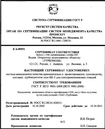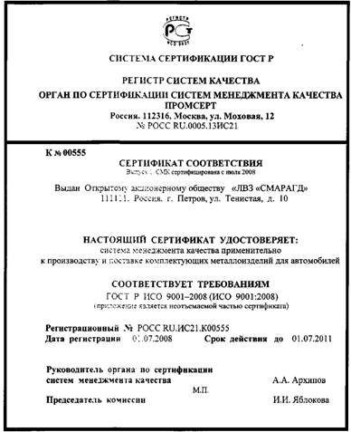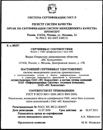 (ПОДТВЕРЖДЕНИЕ СООТВЕТСТВИЯ) ТРЕБОВАНИЯМ ГОСТ Р ИСО 9001-2008 (ИСО 9001:2008)