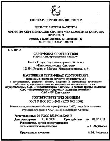 Система сертификации ГОСТ Р. Регистр систем качестваПОРЯДОК СЕРТИФИКАЦИИ СИСТЕМ МЕНЕДЖМЕНТА КАЧЕСТВА НА СООТВЕТСТВИЕ ГОСТ Р ИСО 9001-2008 (ИСО 9001:2008)