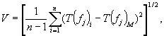 Примечание - Среднее значение порога вибротактильной чувствительности, определенное по формуле (1) через значения величин, выраженные в децибелах, дБ, эквивалентно среднегеометрическому значению результатов измерений тех же величин, выраженных в метрах на секунду в квадрате, м/с2. 4.3 Выборочная дисперсия В случае проведения ряда независимых (например, в разные дни) измерений порога вибротактильной чувствительности на одном и том же пальце руки субъекта можно рассчитать характеристику разброса результатов измерений - выборочное стандартное отклонение V от среднего порога, выражаемое в децибелах. Если значения порогов вибротактильной чувствительности T(fj)i, полученные в результате повторных измерений на заданной частоте (эквивалентной частоте) fj предъявления стимула, выражены в децибелах, дБ (относительно опорного значения 10-6 м/с2), то где T(fj)M - усредненное по n измерениям значение порога вибротактильной чувствительности в децибелах (относительно опорного значения 10-6 м/с2). Если рассчитать стандартное отклонение по результатам повторных измерений невозможно (например, для данного субъекта проведено только одно измерение порога вибротактильной чувствительности), то в качестве оценки этой характеристики берут стандартное отклонение, присущее данной методике измерений. Стандартное отклонение для методики измерений получают на основе измерений по данной методике порогов вибротактильной чувствительности у здоровых субъектов. Для расчета стандартного отклонения необходимо выполнить не менее 10 независимых измерений (например, в 10 разных дней). Измерения следует выполнять в соответствии с требованиями ИСО 13091-1. Стандартное отклонение, в децибелах, вычисляют по формуле (2), используя результаты измерений порогов вибротактильной чувствительности, в децибелах среднеарифметическое стандартных отклонений, рассчитанных, по крайней мере, для трех здоровых субъектов, применяют в качестве оценки порога вибротактильной чувствительности на данной частоте (эквивалентной частоте) при интерпретации результатов измерений для конкретного субъекта. Обычные гормональные изменения во время менструального цикла у женщин приводят к смещениям значений порогов, полученных от FAII, до 20 дБ. При оценке разброса результатов измерений порогов вибротактильной чувствительности женщин для FAII (т.е. на частотах 100, 125 и 160 Гц) указанную цикличность следует принимать во внимание. Смещение порога происходит за несколько дней до и через несколько дней после овуляции. 4.4 Достоверность измерений В некоторых ситуациях исследователем может быть поставлена под сомнение достоверность результатов измерений. Так в ИСО 13091-1 указано, что к ошибочным заключениям ведет проведение измерений на поврежденных участках кожи. В этом случае для анализа и правильной интерпретации результатов измерений порогов вибротактильной чувствительности необходимо получение дополнительной информации. В частности, следует рассмотреть возможность повышения достоверности результатов посредством проведения новой серии измерений в соответствии с требованиями ИСО 13091-1. Результаты этой новой серии измерений должны быть обработаны в соответствии с настоящим стандартом. Примечание - Если для одного участка измерений пороги вибротактильной чувствительности определяют на д