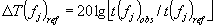 а среднее референтное смещение порога для частоты fj определяют по формуле