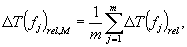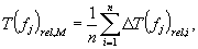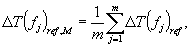 где оба члена в правой части также должны быть выражены в децибелах, дБ, (относительно опорного значения 10-6 м/с2). Формулу (5) можно преобразовать, выразив ∆Т(fj)ref через значения порогов, выраженных в метрах на секунду в квадрате, м/с2: Примечание - Вычисление референтного смещения порога способствует выявлению тактильной дисфункции, которая может быть следствием повреждения механорецепторов или нервной проводимости. Существует корреляция между референтным смещением порога и проявлением симптоматики. Референтное смещение порога может быть также обусловлено невропатией верхних конечностей. 5.4 Средние смещения порогов В случае повторных измерений смещений порога для заданной частоты (эквивалентной частоты), если есть основания полагать, что измеряемая величина является стабильной, следует вычислять среднеарифметические значения относительного и референтного смещений порогов, выраженные в децибелах. Среднее относительное смещение порога для частоты fj определяют по формуле