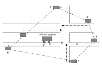 здания пожарного депо Рисунок 1 5 Методика определения максимально допустимого расстояния от объекта предполагаемого пожара до ближайшего пожарного депоРасчет максимально допустимого расстояния от объекта предполагаемого пожара до ближайшего здания пожарного депо производится в следующей последовательности: 5.1 Выбирают объект предполагаемого пожара (здание или сооружение, которое подлежит защите). 5.2 Рассчитывают по методике приложения А к настоящему своду правил необходимое время эвакуации людей из помещения при пожаре - τнб. В качестве помещений пожара следует выбирать несколько помещений с различными видами и схемами размещения горючих материалов. 5.3 Выбирают (обосновывают) наиболее пожароопасное помещение в здании (помещение, для которого τнб=min). 5.4 Выбирают наиболее пожароопасный вид горючего материала в помещении пожара (материала, для которого τнб=min). 5.5 Выбирают (обосновывают) расчетную схему развития пожара в защищаемом помещении. В качестве расчетной выбирают одну из приведенных в п. 5.9 настоящей Методики расчетных схем развития пожара в помещении, для которого τнб=min. 5.6 Выбирают цели выезда оперативных подразделений пожарной охраны на пожар в здании. Цель № 1 выбирают для всех открытых пожаров (пожаров на открытом пространстве вне зданий и сооружений). Цели № 1 и № 2 выбирают для всех внутренних (закрытых) пожаров (пожаров внутри зданий и сооружений). Одновременное достижение целей № 1, № 2 и № 3 выбирают для внутренних пожаров только в том случае, когда эвакуация людей из помещения пожара невозможна без причинения вреда их жизни (помещения с послеоперационными больными, подключенными к аппаратам искусственного поддержания жизнедеятельности организма, помещения с людьми в барокамерах и др.) или нецелесообразна по условиям технологического процесса. 5.7 Подбирают необходимые исходные данные для проведения расчетов максимально допустимого расстояния по дорогам населенного пункта или производственного объекта от здания (сооружения) до пожарного депо - li (где i - номер цели выезда подразделений пожарной охраны на пожар). 5.8 Определяют расчетным путем по формулам (16)-(24) необходимые для проведения расчетов li параметры. 5.9 Рассчитывают значения максимально допустимого расстояния от объекта предполагаемого пожара до ближайшего здания пожарного депо li для каждой из рассматриваемых целей и соответствующих схем развития пожара по формулам: а) для случая кругового распространения пламени по поверхности твердых веществ и материалов: