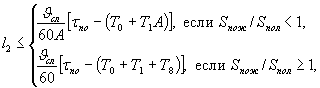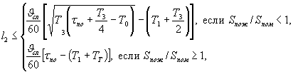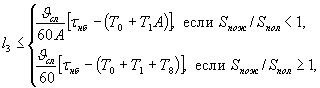 где li - максимально допустимое расстояние по дорогам населенного пункта или производственного объекта от здания (сооружения) до пожарного депо при i-той цели выезда на пожар, км; Jсл - скорость следования подразделения пожарной охраны на место пожара (оценивается для наиболее неблагоприятных влияющих на нее факторов (состояние дорог, особенности ландшафта, климатические особенности периода года и др.), км/ч; τпо - время от момента возникновения пожара до момента наступления предела огнестойкости строительных конструкций, мин (определяют по таблице 21 Федерального закона от 22 июля 2008 г. № 123-ФЗ «Технический регламент о требованиях пожарной безопасности»); Sпож - площадь возможного пожара на момент подачи огнетушащего средства, м2. В формулах (13) и (23) Sпож принимают равной площади поверхности горящей жидкости (площади обвалования). В формулах (2) и (3) параметр Sпож определяют из выражения
