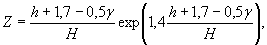 где Z - безразмерный параметр неравномерности распределения опасных факторов пожара по высоте помещения; h - высота отметки (размещения площадки), на которой находятся люди в помещении, м; Н - высота помещения, м; 1,7 - высота рабочей зоны (средний рост человека), м; γ - разность отметок пола в помещении, равная нулю при горизонтальном его расположении, м. А.2.5 Оценивают безразмерные показатели опасности температуры (σт), потери видимости в дыму (Gпв) и токсичных продуктов горения или кислорода (Сi) для критических значений соответствующих опасных факторов пожара: