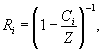 где σт - безразмерный показатель опасности температуры; Сi - безразмерный показатель опасности для i-ого газа; Gпв - безразмерный показатель опасности для случая потери видимости в дыму; Xm0i - среднеобъемная концентрация i-ого газа в помещении до пожара, кг/м3; Xкрi - критическая концентрация i-ого газа для жизни человека, кг/м3; Ткр - критическая для жизни людей температура среды в помещении при пожаре, К; α - коэффициент отражения поверхностей (предметов) на путях эвакуации; Е - начальная освещенность поверхностей в помещении, лк. А.2.6 Рассчитывают интегральные показатели опасности температуры (Rт), токсичных продуктов горения или кислорода (Ri) и потери видимости в дыму (Rпв) по формулам: