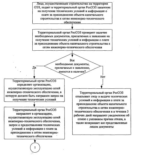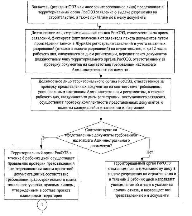 I. Общие положения1.1. Наименование государственной услугиВыдача разрешений на строительство, а также получение технических условий присоединения к сетям инженерно-технического обеспечения и осуществление передачи этих условий и разрешений на строительство индивидуальным предпринимателям, юридическим лицам, осуществляющим строительство или реконструкцию. 1.2. Нормативные правовые акты, регулирующие предоставление государственной услугиПредоставление государственной услуги "Выдача разрешений на строительство, а также получение технических условий присоединения к сетям инженерно-технического обеспечения и передача этих условий и разрешений на строительство индивидуальным предпринимателям, юридическим лицам, осуществляющим строительство или реконструкцию" (далее - государственная услуга) осуществляется в соответствии с: Градостроительным кодексом Российской Федерации (Собрание законодательства Российской Федерации, 2005, N 1, ст. 16, N 30, ст. 3128; 2006, N 1, ст. 10, ст. 21, N 23, ст. 2380, N 31, ст. 3442, N 50, ст. 5279, N 52, ст. 5498; 2007, N 1, ст. 21, N 21, ст. 2455, N 31, ст. 4012, N 45, ст. 5417, N 46, ст. 5553, N 50, ст. 6237; 2008, N 20, ст. 2251, ст. 2260, N 29, ст. 3418, N 30, ст. 3604); Федеральным законом от 22 июля 2005 г. N 116-ФЗ "Об особых экономических зонах в Российской Федерации" (Собрание законодательства Российской Федерации, 2005, N 30, ст. 3127; 2006, N 23, ст. 2383, N 52, ст. 5498; 2007, N 45, ст. 5417); Федеральным законом от 2 мая 2006 г. N 59-ФЗ "О порядке рассмотрения обращений граждан Российской Федерации" (Собрание законодательства Российской Федерации, 2006, N 19, ст. 2060); постановлением Правительства Российской Федерации от 19 августа 2005 г. N 530 "О Федеральном агентстве по управлению особыми экономическими зонами" (Собрание законодательства Российской Федерации, 2005, N 35, ст. 3611, N 48, ст. 5049; 2006, N 18, ст. 2005, N 25, ст. 2727; 2006, N 32, ст. 3578; 2007, N 16, ст. 1925; N 45, ст. 5499; 2008, N 2, ст. 92, N 24, ст. 2867); постановлением Правительства Российской Федерации от 24 ноября 2005 г. N 698 "О форме разрешения на строительство и форме разрешения на ввод объекта в эксплуатацию" (Собрание законодательства Российской Федерации, 2005, N 48, ст. 5047); постановлением Правительства Российской Федерации от 29 декабря 2005 г. N 840 "О форме градостроительного плана земельного участка" (Собрание законодательства Российской Федерации, 2006, N 2, ст. 205); постановлением Правительства Российской Федерации от 13 февраля 2006 г. N 83 "Об утверждении Правил определения и предоставления технических условий подключения объекта капитального строительства к сетям инженерно-технического обеспечения и Правил подключения объекта капитального строительства к сетям инженерно-технического обеспечения" (Собрание законодательства Российской Федерации, 2006, N 8, ст. 920); приказом Минэкономразвития России от 19 ноября 2007 г. N 403 "Об утверждении Типового положения о территориальном органе Федерального агентства по управлению особыми экономическими зонами" (зарегистрирован в Минюсте России 14 декабря 2007 г., регистрационный N 10746). 1.3. Наименование федерального органа исполнительной власти, предоставляющего государственную услугуГосударственную услугу предоставляют территориальные органы Федерального агентства по управлению особыми экономическими зонами (далее - территориальные органы РосОЭЗ). Федеральное агентство по управлению особыми экономическими зонами (далее - РосОЭЗ) организует методическое обеспечение, координацию и ко