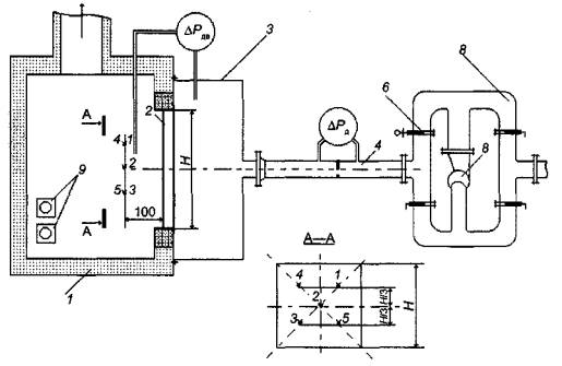 где FД - площадь проходного сечения двери, м2; Dti - интервал времени, в течение которого выполняются измерения, мин; DРi - разность давлений на двери в интервале времени, Па; Gi - расход газов, проходящих через образец в интервале времени, кг/с; ri - плотность проходящих через мерную диафрагму газов в интервале, кг/м3; r20 - плотность газов при Т = 293 К, кг/м3; п - количество интервалов времени Dti. 10 Оценка результатов испытаний10.1 За предел огнестойкости по потере дымогазонепроницаемости принимается минимальное время наступления предельного состояния по 4.1, 4.2, если не обнаружено значительное (>25 %) расхождение результатов. 10.2 Результаты испытаний, описанные в отчете (протоколе), действительны для дверей данного типа с отклонением их габаритных размеров по высоте и ширине от плюс 10 % до минус 30 % с округлением в большую сторону до 50 мм, в меньшую - до 100 мм. 11 Отчет об испытании11.1 Отчет об испытании, составленный по рекомендуемой форме, должен содержать следующие данные: 1 Наименование и адрес завода-изготовителя. 2 Характеристику объекта испытаний. 3 Характеристику заказываемой услуги. 4 Методы испытаний (ссылка). 5 Процедуру испытания. 6 Испытательное оборудование и средства измерений. 7 Процедуру отбора образцов. 8 Результаты испытаний. 9 Оценку результатов испытаний. 10 Исполнители. 12 Техника безопасности12.1 При испытании дверей на дымогазопроницаемость должны соблюдаться требования безопасности и производственной санитарии согласно ГОСТ 12.2.003 и ГОСТ 12.1.019. 12.2 К испытанию допускаются люди, ознакомленные с техническим описанием и инструкцией по эксплуатации испытательного стенда. 12.3 Перед испытанием необходимо проверить надежность крепления образца, а также приборов и оборудования, необходимых для стендового испытания. Приложение