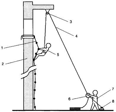 1 - наименование; 2 - конструктивное исполнение тетив; 3 - длина лестницы в метрах; 4 - расположение на защищаемом объекте; 5 - обозначение технического документа, в соответствии с которым изготовлена лестница. Пример условного обозначения: ЛИСП Кст-15-Н, ТУ 525482-0000-00000000-00. Лестница навесная спасательная пожарная, материал тетив - канат стальной, длина 7.3 Маркировка должна сохраняться в течение всего срока эксплуатации. 7.4 Транспортная маркировка должна соответствовать ГОСТ 14192. 7.5 На сумке или контейнере для хранения лестницы могут быть нанесены рисунки (пиктограммы), поясняющие порядок работы с лестницей. 8 Правила приемки8.1 Объем и виды испытаний 8.1.1 Лестницы должны подвергаться приемо-сдаточным, приемочным, квалификационным, периодическим, типовым и сертификационным испытаниям. Периодические и приемо-сдаточные испытания проводятся в соответствии с ГОСТ Р 15.309. Приемочные и квалификационные испытания проводятся в соответствии с ГОСТ Р 15.201. Типовые испытания проводятся в случае внесения изменений в конструкцию, материалы или технологию изготовления лестниц. Типовые испытания проводятся по специально разработанной программе. 8.1.2 Номера пунктов, в которых изложены технические требования и методы испытаний по показателям назначения приведены в таблице 1. Для проведения испытаний в объеме, указанном в таблице 1, необходимо не менее 8 образцов. Таблица 1